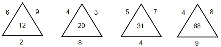 gracias a esto, nos damos cuenta que en el tercer triángulo el resultado sería 23, no 31