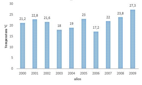 Lea el texto, observe la imagen y conteste. En el siguiente grafico se recogen las temperaturas medias registradas en Tijuana durante el mes de junio de los diez últimos años.